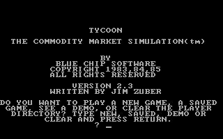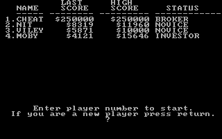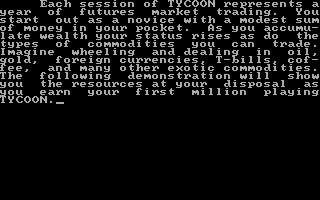Released in 1983 by Blue Chip Software, this game immerses players in the world of commodity trading. As a market simulation, it provides a realistic and educational experience that challenges players to make strategic decisions in a competitive environment.