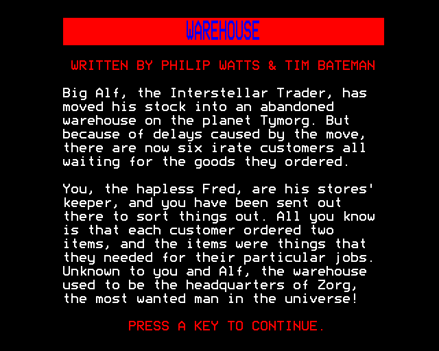 I’m sorry, but I wasn’t able to locate any information regarding a video game titled ‘Warehouse’ released in 1983.