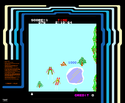 Released in the arcades in 1982, this retro sports game captures the thrill and excitement of downhill skiing. Set against a scenic snowy mountain backdrop, players control an on-screen skier navigating treacherous slopes and avoiding various obstacles, all while racing against the clock.