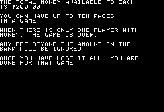 Apple Derby is an engaging vintage video game that transports players to a digital racing track teeming with excitement and strategy. Released in the late 1970s, it represents a snapshot of early arcade gaming, popular during a period when video game technology was in its infancy.