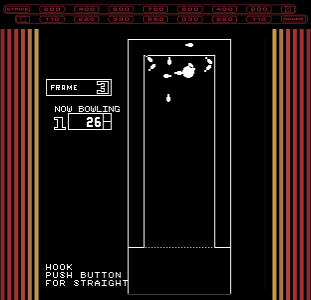 The gameplay offers a straightforward bowling experience. Players take control using a trackball or joystick to aim and release the bowling ball down the lane. The objective is to knock down as many pins as possible, simulating a real-life bowling experience within a digital arcade setting.