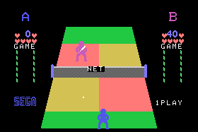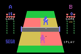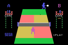 Released in 1983 by SEGA Enterprises Ltd., this arcade game brings the excitement of tennis to the video game world. Players engage in singles matches, facing off against computer-controlled opponents on a vibrant, pixelated court. This early tennis simulation captures the essence of the sport with simple yet engaging gameplay mechanics.