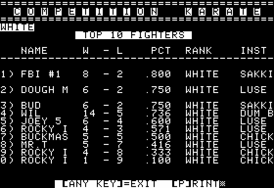 Though not as widely discussed as other games from the era, it is part of a broader trend of 1980s games that explored martial arts themes. It reflects the cultural fascination with karate and martial arts films of the time, contributing to the genre’s development in video games.