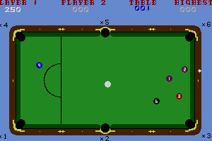 Released in 1987, this video game offers players a digital experience of playing pool. Designed for use on early home computers, it aimed to replicate the classic game of billiards with a straightforward interface and simple graphics characteristic of the time.