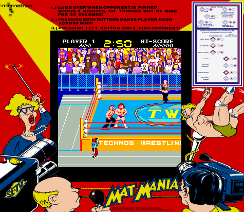Released in 1985 by Technos Japan under a license from Taito, this arcade video game delivers a professional wrestling experience that captivated players of its era. The gameplay invites players to step into the wrestling ring, choosing from a variety of colorful and larger-than-life characters to battle for victory.