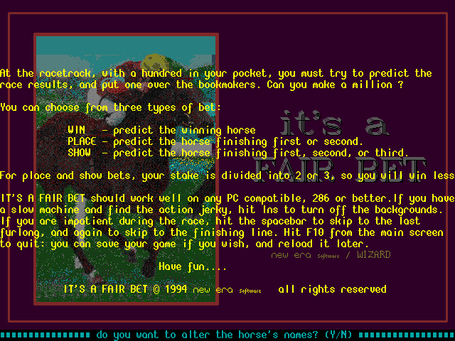 Developed by New Era Software and released in 1994, this game challenges players with its engaging mechanics and unique setting. The gameplay is designed to test both luck and strategy, providing hours of entertainment for those seeking a compelling gaming experience.