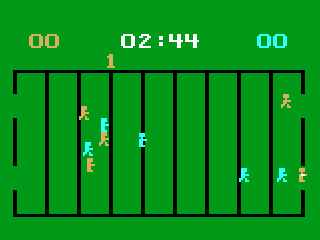 In ‘Football!’, players engage in a simplified version of the American football experience. The game offers an overhead view of the field, showcasing a straightforward representation of football plays. Players can choose from a selection of offensive and defensive plays, aiming to outsmart their opponents and score touchdowns. The mechanics are basic, reflecting the limitations of the hardware at the time, yet they still provide a fun and engaging experience that captures the essence of strategic planning found in real football matches.