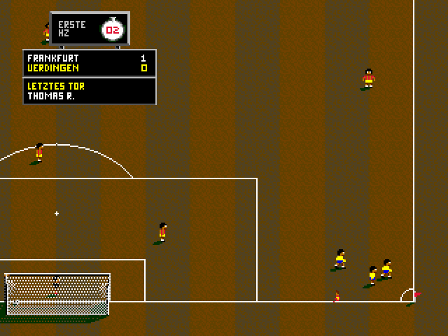 The game provides a classic 2D soccer simulation where players compete in football matches, aiming to score goals and win tournaments. Players can choose from different teams, each characterized by unique attributes, and engage in matches against AI or multiplayer opponents.
