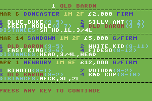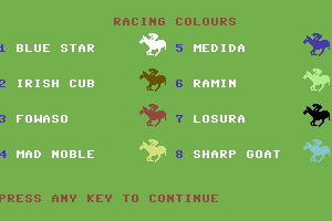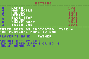 Built with the technology of its time, the game showcases basic graphics and sound capabilities that were typical for early 1980s video games. It was released on platforms that supported home computing during that era, giving enthusiasts of horse racing a novel way to engage with the sport through technology.