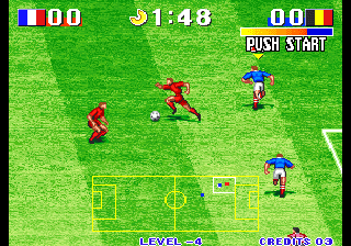 The game features a side-scrolling perspective that places emphasis on arcade-style action rather than simulation. Players can choose from a variety of international teams to compete against each other in thrilling matches. The game stands out with its simplistic controls, making it accessible to both casual and experienced players. Special moves and power shots add excitement to the gameplay, providing players with the chance to execute spectacular goals.