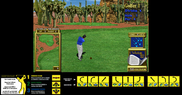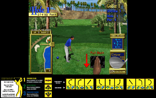 The game offers an engaging golfing experience with a variety of courses and realistic ball physics. Players use a trackball to simulate the golf swing, providing a unique and interactive gaming experience. The controls are intuitive yet challenging, demanding precision and skill to master different shots.