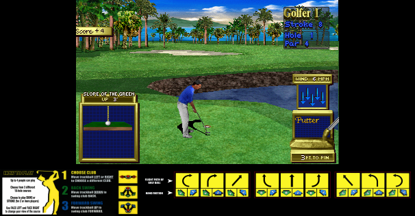 The game offers a unique golfing experience with its intuitive trackball control system. Players use the trackball to simulate the swing of a golf club, allowing for a realistic and tactile gaming experience. With various courses to choose from and multiple playable modes, it offers plenty of replayability. Whether playing solo or competing against friends, players can enjoy smooth and competitive rounds of golf.