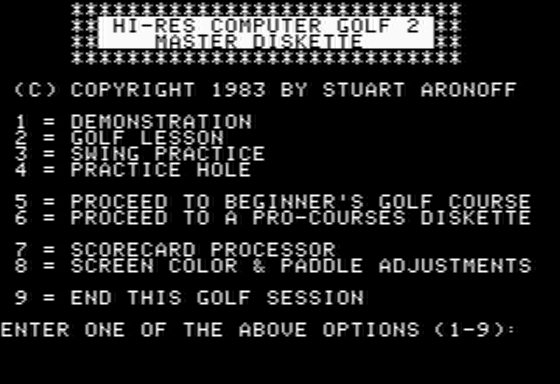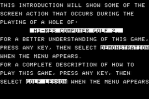 Hi-Res Computer Golf 2 is a classic sports simulation game released in 1983. Developed during the early days of digital golf experiences, this game aimed to bring the serene and strategic nature of golf to the burgeoning world of personal computers. Its release is part of the early era of sports games that sought to replicate real-world sports within the technical limitations of the time.