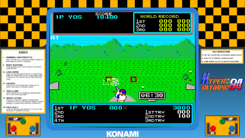 An interesting aspect of the game is that it became known for players using unusual techniques to achieve higher scores, including using spoons or pens to rapidly press the buttons, a technique that originated from the original ‘Hyper Olympic’ games.