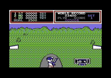 The game features a series of athletic events, each requiring a unique set of skills to succeed. Players compete in activities such as running, swimming, skeet shooting, pole vaulting, long horse, archery, and triple jump. Success in these events involves precise movements and rapid input, often through button mashing and strategic timing.
