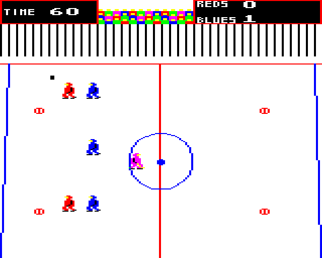 Players are tasked with controlling a hockey team, maneuvering across the ice to outscore the opponent. The game requires strategic planning and quick reflexes, capturing the essence of real-life hockey despite the technological constraints of the early 1980s.