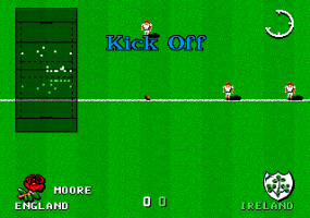 The game utilizes graphics typical of early ’90s console games, with simple character models and pitch designs. The sound effects aim to replicate the atmosphere of a rugby match, although they are quite basic by modern standards. The visuals and audio together provide a nostalgic gaming experience for fans of retro sports titles.