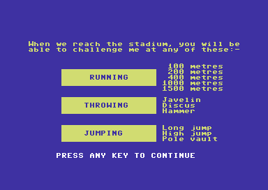 Released in 1984 and developed by Database Software, this video game invites players to experience a simplified take on traditional Olympic games. With a simple control scheme and basic visuals typical of the era, the game captures the spirit of competition with an easy-to-understand interface.