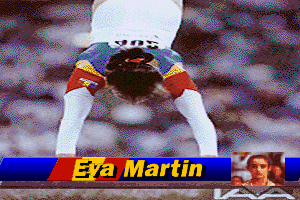 The visual presentation is typical of early 1990s video games, with pixel art graphics that attempt to represent the dynamic movements of gymnasts. The sound effects and music aim to recreate the energetic atmosphere of a live gymnastics competition.