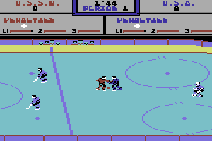 For its time, the game offers commendable graphics, capturing the essence of a real hockey game. Although limited by the technology of the 1980s, the visuals are effective enough to convey the fast-paced action of hockey. The sound effects, while simple, enhance the overall gaming experience, adding to the intensity of matches.