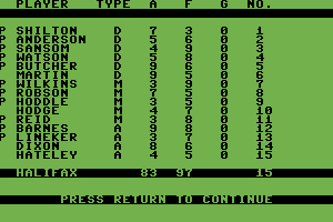 This game provided a range of features typical of the era. It included basic team management options, allowing players to select teams, make strategic decisions, and simulate matches. The graphics were elementary, utilizing the technology of the time to represent teams and matches in a simple, yet effective manner.
