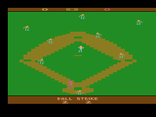 The gameplay offers a simplified version of baseball, focusing on batting, pitching, and fielding. Players can choose to play against the computer or another player. The primary goal, as with traditional baseball, is to score runs by hitting a ball and running around a series of bases. The game uses a side-scrolling view which captures the essential elements of the sport while working within the technical limitations of the Atari 2600.