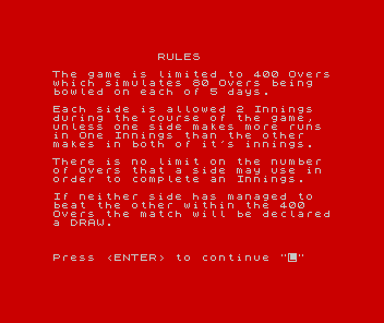 The 1983 video game is a cricket simulation that aims to replicate the experience of playing both Test Matches and One Day Internationals. It was released for personal computers during a period when sports simulations were beginning to gain popularity among gamers.