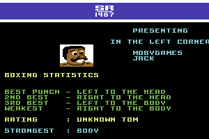 Released in 1987 and developed by Software Creations Ltd., this game offers players a thrilling experience in the world of boxing. As a sports simulation game, it allows players to step into the ring and compete in matches with the goal of achieving the prestigious knockout.