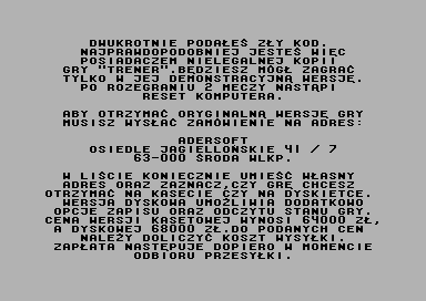 I’m sorry, I couldn’t find any information about a video game developed by Adersoft in 1995 titled ‘Trener’.