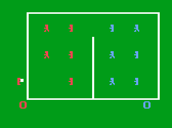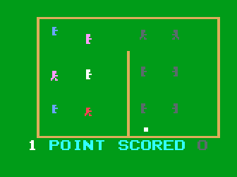 The game featured rudimentary graphics by today’s standards, with basic 2D gameplay mechanics. Players had the option to compete against the computer or engage in a head-to-head match against another player. The controls were straightforward, enabling players to both serve and return volleys over the net with timed button presses.