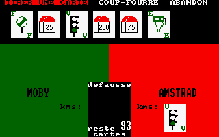 Released in 1985, this timeless video game brings the thrill of a classic French card game into the digital arena. Emulate a race around the French countryside as you strategically manage obstacles, avoid accidents, and outpace your opponents in a quest to reach 1000 kilometers.