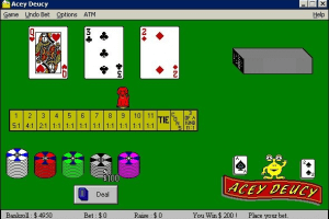 Acey Deucy is a digital adaptation of the classic card game, exploring strategic betting and decision-making. Set against a backdrop of simple yet engaging graphics, the game challenges players’ abilities to predict outcomes and manage risk effectively.