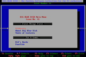 ‘Big Blue Disk #41’ is a fascinating entry in the series of monthly subscription disks that offered a unique medley of software programs. This installment featured a blend of games, utilities, and educational content, aimed at providing a varied computing experience packed into one convenient package.