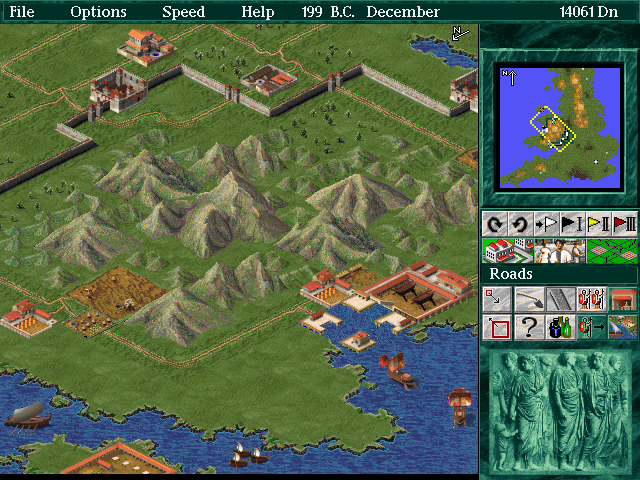 Set in the ancient Roman world, the game challenges players to balance city-building, resource management, and combat. Players must construct a thriving city by managing resources such as food, water, and raw materials, while simultaneously expanding their influence through military campaigns. The game features both a city view, where players can micromanage urban development, and a detailed province view that requires strategic planning.