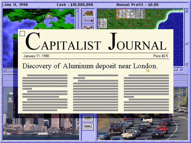 Released in 1995, this strategy and simulation game developed by Enlight Software allows players to build and manage a business empire. In the game, players can simulate various aspects of business operations including production, marketing, purchasing, and sales to earn profits and expand their enterprises.