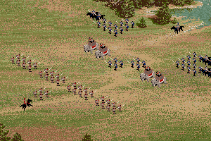 The combat in the game involves deploying and commanding an army in real-time battles. Players choose formations and strategies to overcome enemy forces. The battles are simplified and rely on strategic placement and timely movements rather than complex tactics, making the game accessible yet challenging.