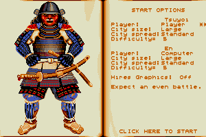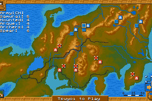 Players assume the role of a warlord with ambitions to unify Japan. The game offers a blend of military strategy and empire management, requiring players to balance military expansion with resource allocation and diplomacy. Strategic decisions must be made regarding army placement, territory acquisition, and alliances with other factions.