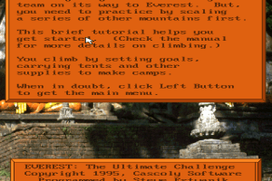 Released in 1996, Everest: The Iceman’s Apprentice is a gripping simulation game developed by Cascoly Software. The game immerses players in the world of high-altitude mountaineering by challenging them to ascend the legendary Mount Everest. As the apprentice of a seasoned climber known as “The Iceman,” players must navigate treacherous terrain, deal with unpredictable weather, and make strategic decisions to reach the summit.