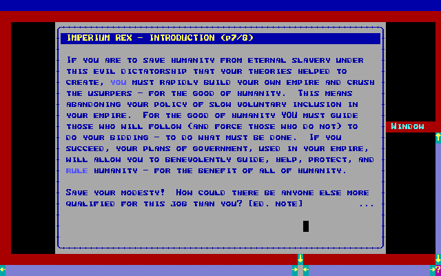 While Imperium Rex may not be among the most renowned titles of the early ’90s, it represents a period in gaming history where strategic depth and complex mechanics were highly valued by a niche audience. The game contributed to the growing popularity of strategy games during this era, preceding more mainstream releases in later years.