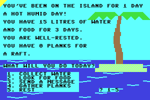 The game’s mechanics are straightforward, leveraging the limited technical capabilities of the era. It focuses on exploration and problem-solving, encouraging players to think critically and make strategic decisions to advance. The graphics are basic, typical of the 1980s style, yet they effectively convey the tropical and adventurous atmosphere of the setting.