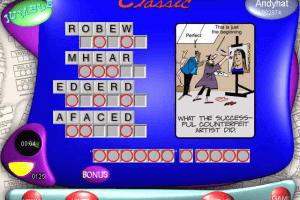 Released in 1998 by Third-i Productions, this engaging word puzzle game brings the classic game of word scrambling to a digital format. Players are challenged to rearrange scrambled letters to form words, testing their vocabulary and cognitive skills in a fun and interactive way.