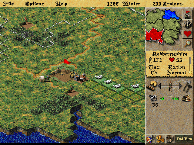 Lords of the Realm II is a turn-based strategy game released in 1996, developed by Impressions Games. Set in a medieval European context, this game combines resource management, territorial conquest, and military tactics. Players assume the role of a noble tasked with ruling a realm, managing resources such as grain and cattle, and eventually conquering rival territories to unify the kingdom under their command.