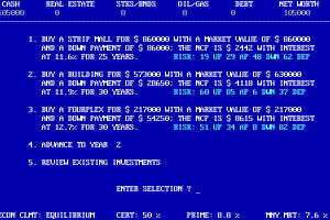 Released in 1986 by Visual Data Communications Corp., this computer video game offered players a distinctive experience of strategy and competition. Set in a world of finance and resources, its gameplay involves building economic empires and strategically managing assets to outmaneuver opponents.