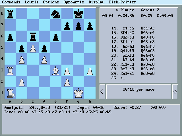 The game offers multiple levels of difficulty, allowing players to adjust the AI’s strength according to their skill levels. This feature made it accessible for beginners and a challenge for advanced players. Mephisto Genius 2 includes various board and piece styles, enhancing the visual experience for the user, and provides comprehensive move analysis for educational purposes.