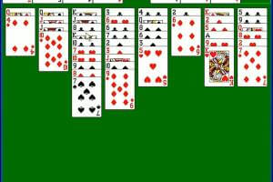 The game is played with a standard 52-card deck and involves creating four stacked piles of cards in ascending order, from Ace to King, in each suit. The main play area consists of eight columns, where players must rearrange the cards to uncover and organize them into their respective foundation piles. Uniquely, Freecell gives players all cards visible at the start of the game, requiring strategy and planning to solve the puzzle.