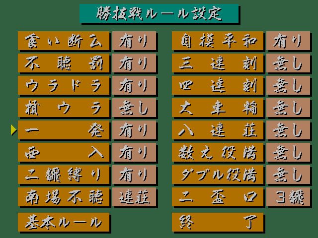 Released in 1988, this video game is a traditional table game developed by Chatnoir Co., Ltd. It offers an engaging rendition of the classic Mahjong experience, appealing to enthusiasts of the game by simulating the strategic play and intricate rules synonymous with Mahjong.