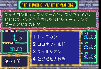 Released in 1993, this unique arcade-style video game was developed by AlfaSystem Co., Ltd.. This game offers an intriguing blend of quiz elements within an adventurous setting, inviting players to test their knowledge across a variety of subjects while navigating through exciting scenarios.