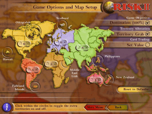 In Risk II, players take turns deploying armies, attacking opponents, and fortifying positions across a world map divided into territories. The game offers both single-player and multiplayer modes, allowing players to challenge AI or compete against friends. A significant feature of the digital version is the introduction of alternate rule sets, including the “Same-Time” mode where all players make their moves simultaneously, adding a fresh dynamics to the classic gameplay.