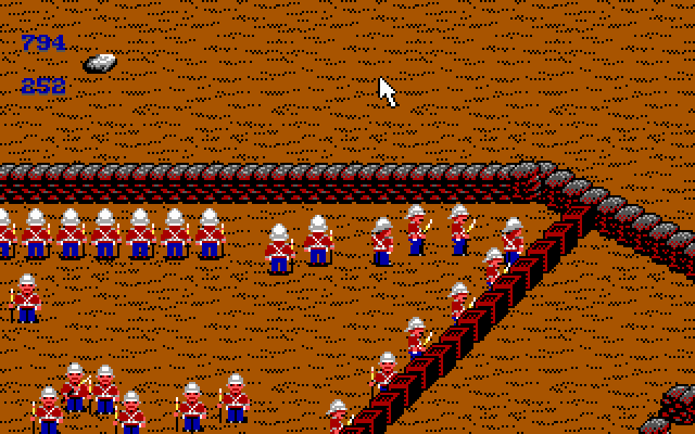In the game, players must manage resources, allocate troops effectively, and make strategic decisions under pressure to fend off waves of Zulu warriors. The game focuses on tactical planning, offering a blend of action and strategy as players strive to protect their stronghold.