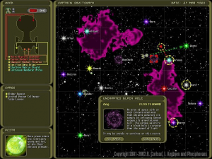 Players are tasked with commanding a spaceship, traveling through randomly generated star systems that are filled with various alien cultures, cosmic phenomena, and mysterious artifacts. The adventure is time-limited, and the player must gather as much as possible before their return. The game is known for its replayability due to the diverse outcomes and discoveries available in each playthrough.